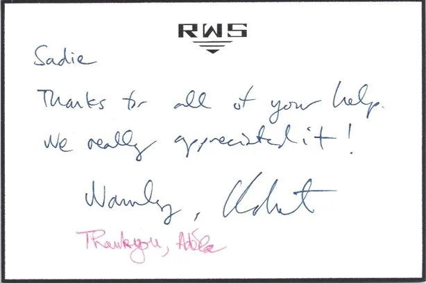 “Sadie, Thank you for all your help/advice–what a lifesaver you are!”